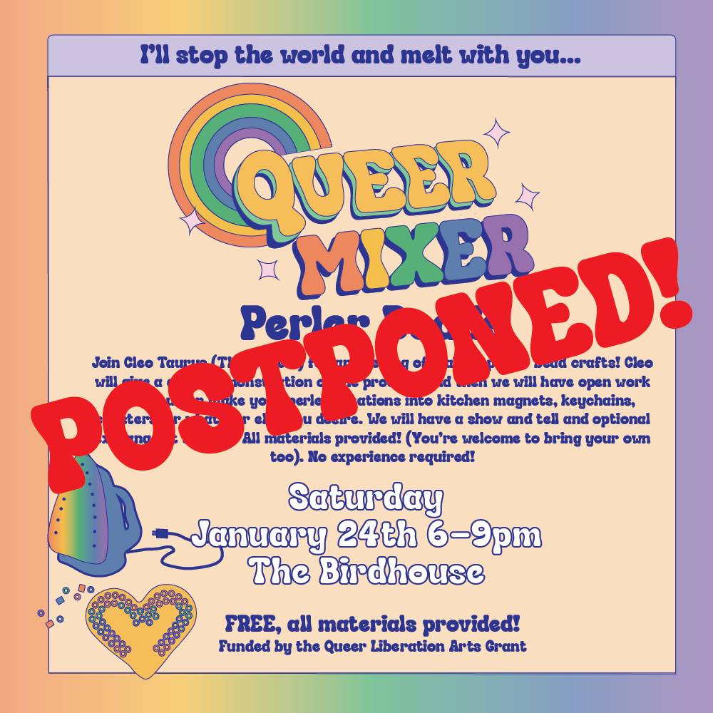 Cleo Taurus presents Queer Mixer Perler Beads on Saturday, January 24th from 6-9pm [POSTPONED!! Due to winter storm! Stay tuned for a new date and time] at Birdhouse (400 N. 4th Ave). Join us for for an evening of making perler bead crafts! Cleo will give a quick demonstration of the process, and then we will have open work time. You can make your perler creations into kitchen magnets, keychains, coasters, or whatever else you desire. We will have a show and tell and optional exchange at the end. All materials provided! (You’re welcome to bring your own too). No experience required!